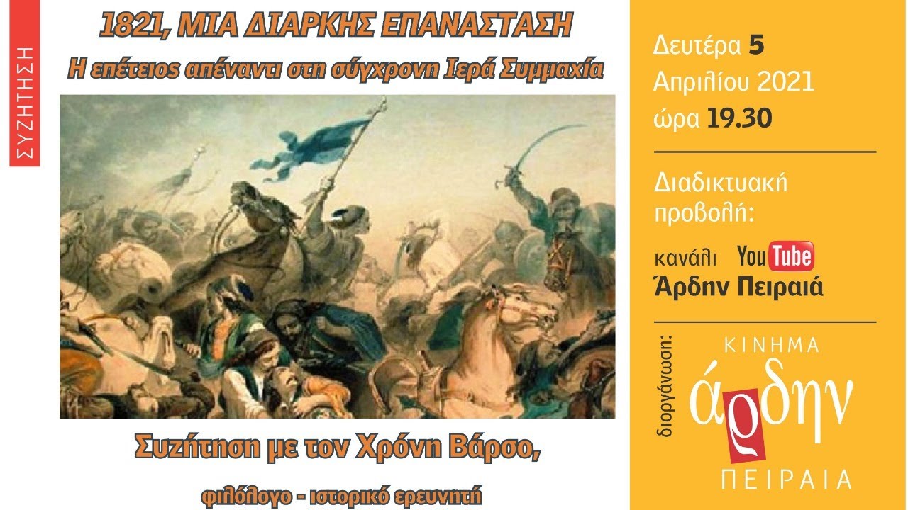 Την εκδήλωση μπορείτε να παρακολουθήσετε ζωντανά από το κανάλι του Άρδην Πειραιά στο Facebook και στο YouTube.