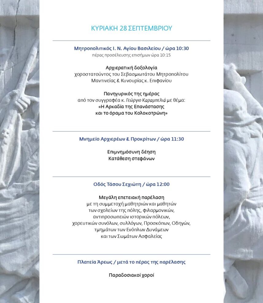 Ο Δήμος Τρίπολης τιμά την 204η Επέτειο από την Άλωση και Απελευθέρωση της Τριπολιτσάς με μια σειρά εκδηλώσεων μνήμης και τιμής, που θα πραγματοποιηθούν από την Κυριακή 21 Σεπτεμβρίου έως και την Κυριακή 28 Σεπτεμβρίου 2025.