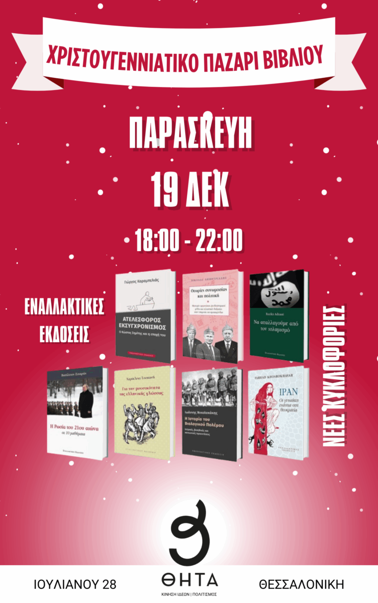 Χριστουγεννιάτικο Παζάρι των Εναλλακτικών Εκδόσεων στην Θεσσαλονίκη, την Παρασκευή 19 Δεκεμβρίου 2025. Θα πραγματοποιηθεί στον χώρο ‘Θήτα’ [Ιουλιανού 28] από τις 6.00-22.00.