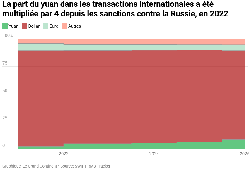 Το μερίδιο του γιουάν στις διεθνείς συναλλαγές έχει τετραπλασιαστεί μετά την επιβολή των κυρώσεων κατά της Ρωσίας το 2022