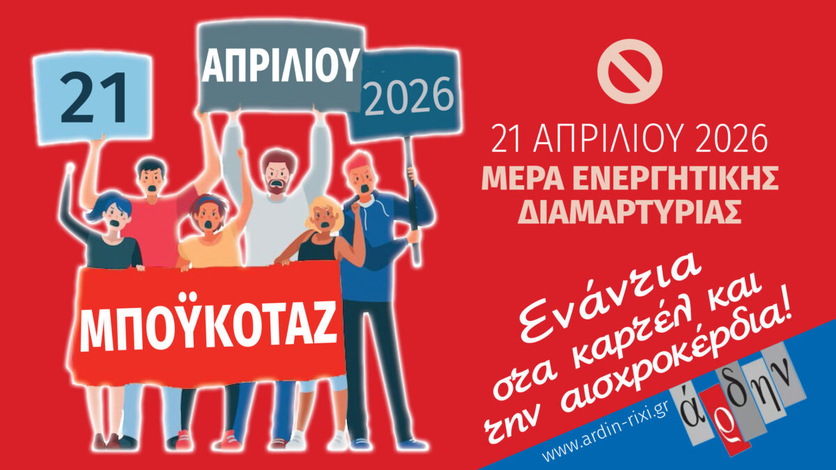 21 ΑΠΡΙΛΙΟΥ 2026 – ΜΕΡΑ ΕΝΕΡΓΗΤΙΚΗΣ ΔΙΑΜΑΡΤΥΡΙΑΣ ΕΝΑΝΤΙΑ ΣΤΗ «ΧΟΥΝΤΑ» ΤΩΝ ΚΑΡΤΕΛ ΤΟΥ ΕΜΠΟΡΙΟΥ ΚΑΙ ΤΗΝ ΑΙΣΧΡΟΚΕΡΔΕΙΑ