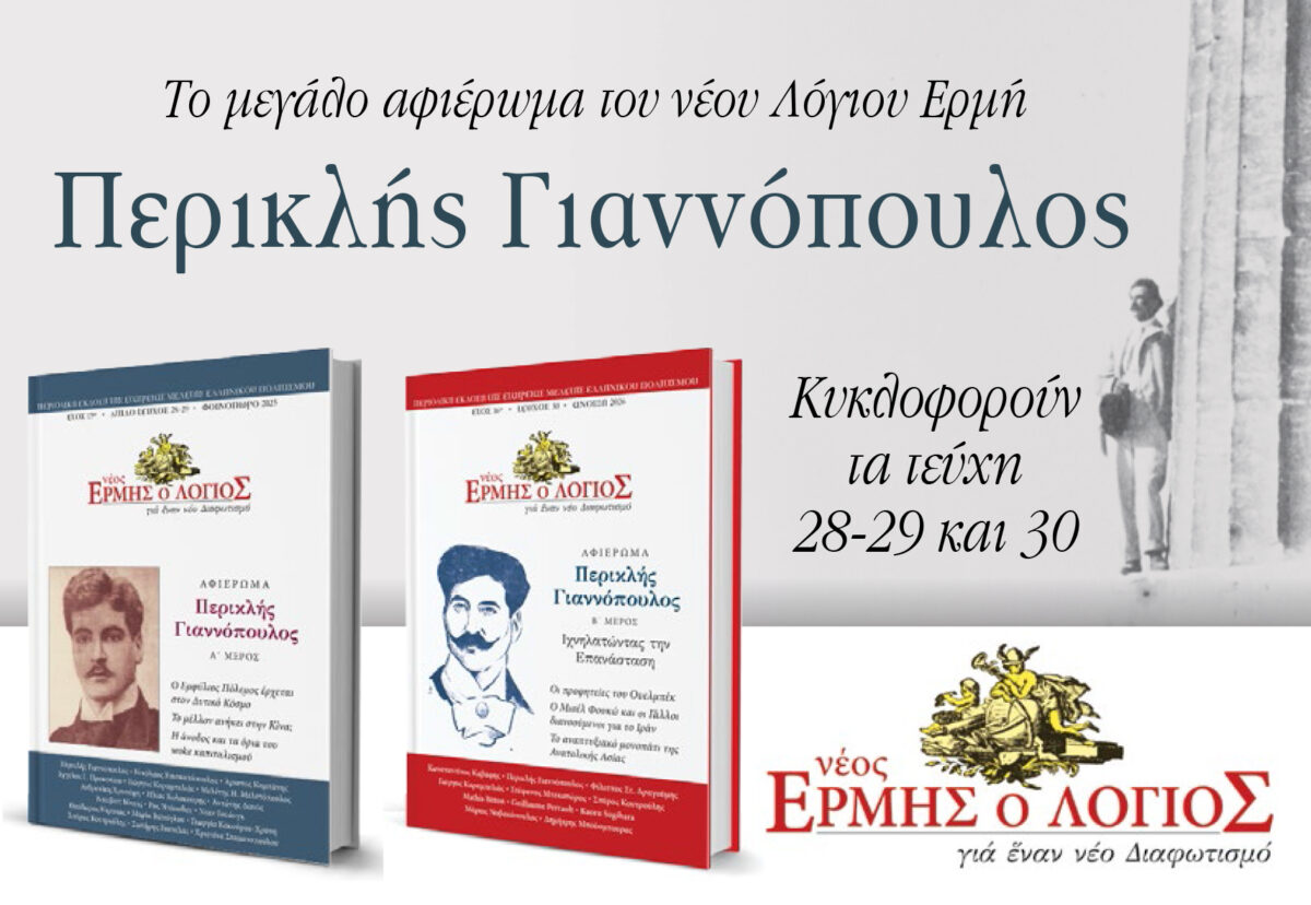 Η συζήτηση θα γίνει με αφορμή τα δύο τεύχη του νέου Ερμή του Λόγιου με αφιέρωμα στον Περικλή Γιαννόπουλο.